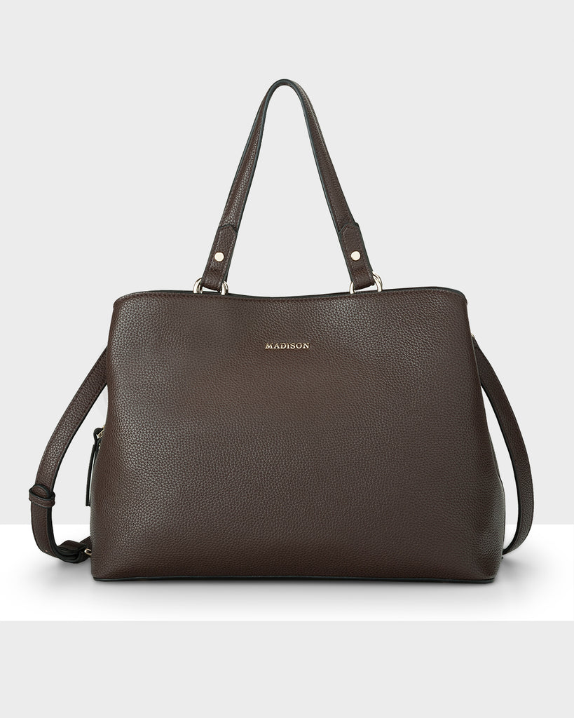 Add a touch of natural warmth and sophistication to your ensemble with a beautiful brown bag from Madison Accessories. Our carefully curated collection features a variety of styles (all made from luxurious brown vegan leather), ensuring there's a perfect match for every outfit.