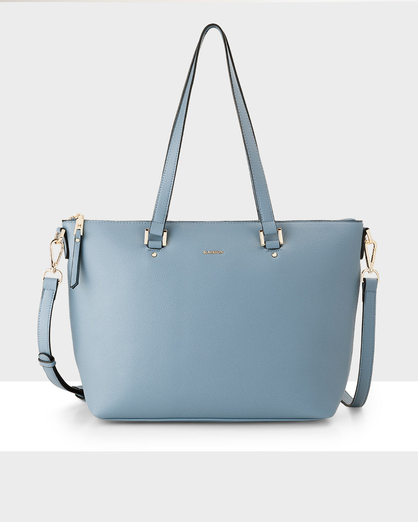 Inga Large Zip Top Tote Bag with Laptop Pocket + Metallic Stripe Bag Strap
