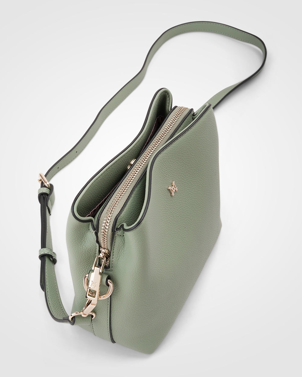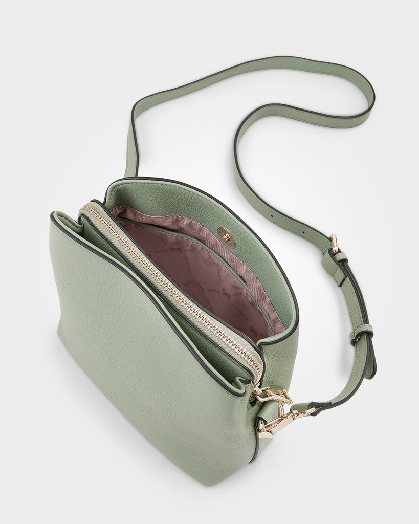 Our Danni is an ideal small crossbody bag featuring 3 compartments and a soft bucket style silhouette. A centre zip section keeps all your essentials secure, and a front and back open section with magnetic snap closure if perfect for easy to access items. Its similar to our beloved Joanie crossbody bag, but in a new smaller more compact size.