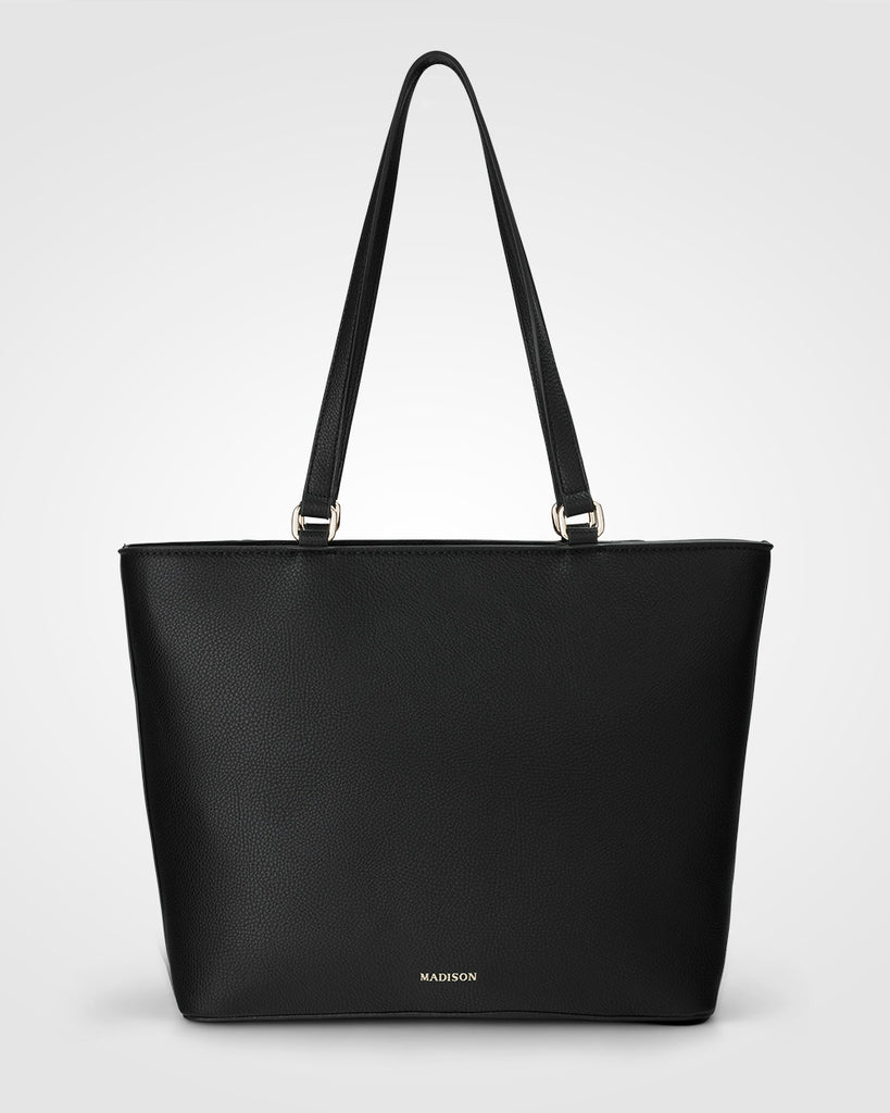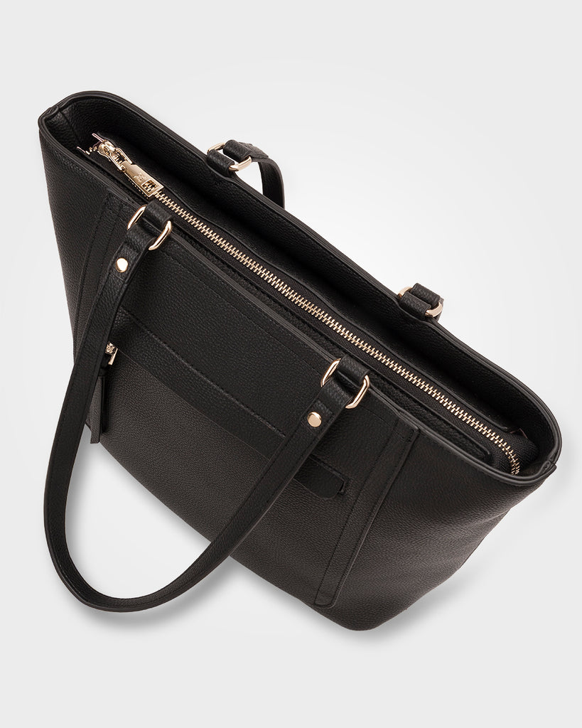 Our Roxanne Tote is a polished staple to take you from work to weekend. Its medium size sits neatly under your shoulder. Featuring a secure zip top closure, convenient zip front pocket and spacious interior it is a timeless silhouette for everyday style.