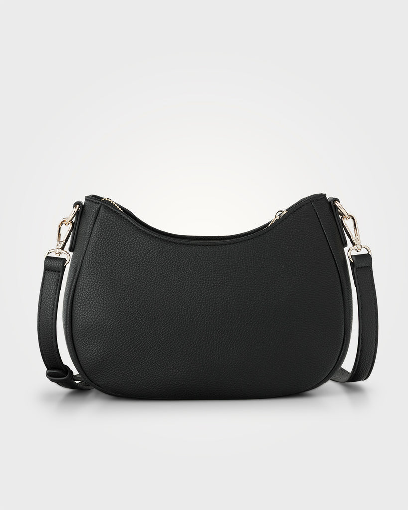 Featuring a curved crescent silhouette, our Simone is small crossbody bag is perfect for everyday style. Arriving with 2 crossbody straps, you can switch between the modern monogram webbing strap and the matching crossbody strap to suit your outfit or mood. The secure zip top closure opens to an interior featuring several pockets for stowing your phone & cards.